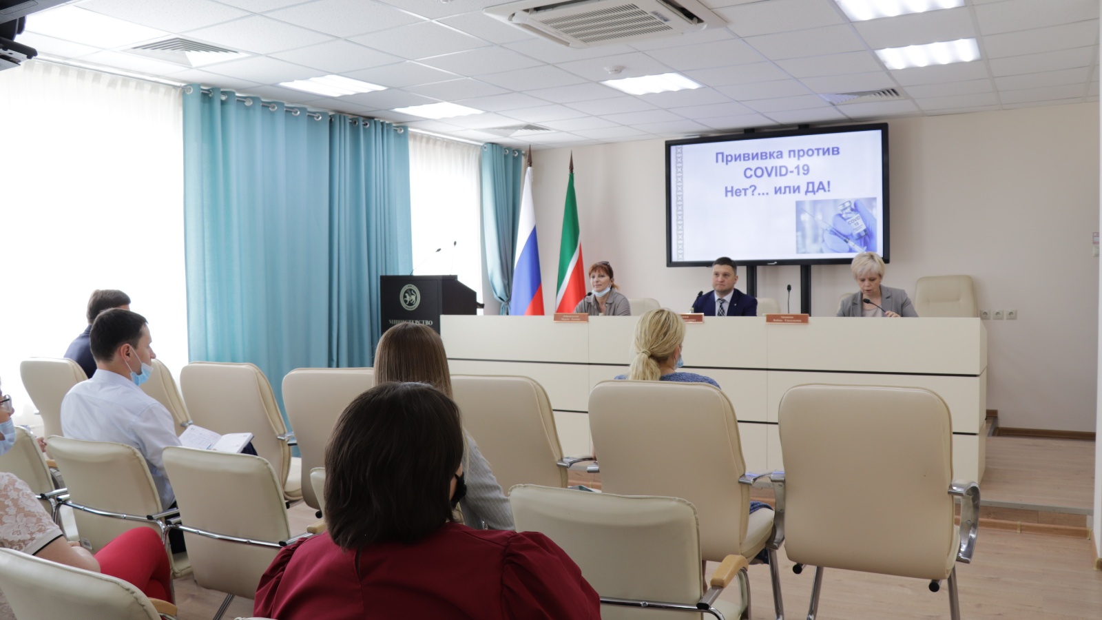 On May 21, 2021, the Ministry's employees met with L. G. Avdonina, Deputy Head of the Department of the Federal Service for Supervision of Consumer Rights Protection and Human Welfare in the Republic of Tatarstan, and M. L. Dobrovolskaya, Deputy Chief Physician for Epidemiological Issues of the Kazan City Polyclinic No. 20.