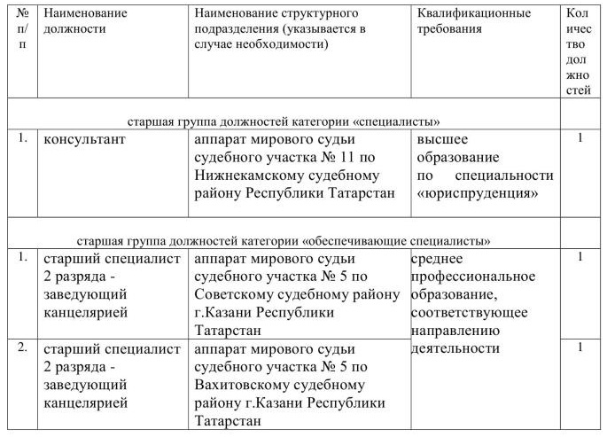 Министерство юстиции Республики Татарстан объявляет конкурс на замещение вакантных должностей государственной гражданской службы Республики Татарстан: