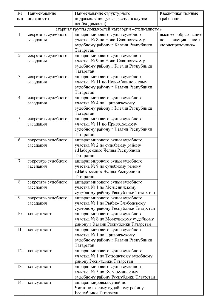 Министерство юстиции Республики Татарстан объявляет конкурс на замещение вакантных должностей государственной гражданской службы Республики Татарстан: