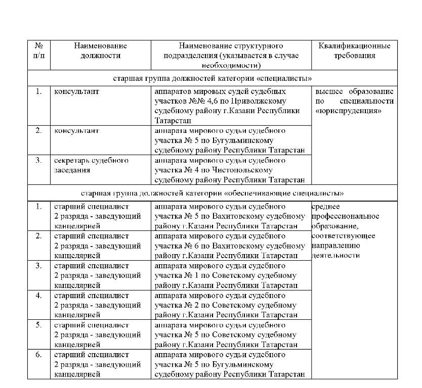 Министерство юстиции Республики Татарстан объявляет конкурс на замещение вакантных должностей государственной гражданской службы Республики Татарстан: