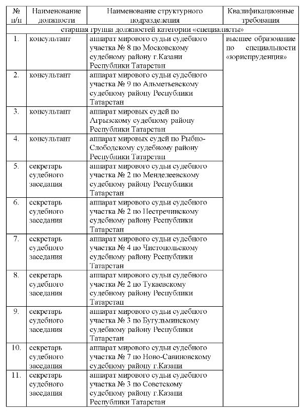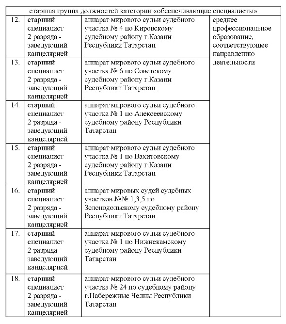 Министерство юстиции Республики Татарстан объявляет конкурс на замещение вакантных должностей государственной гражданской службы Республики Татарстан: