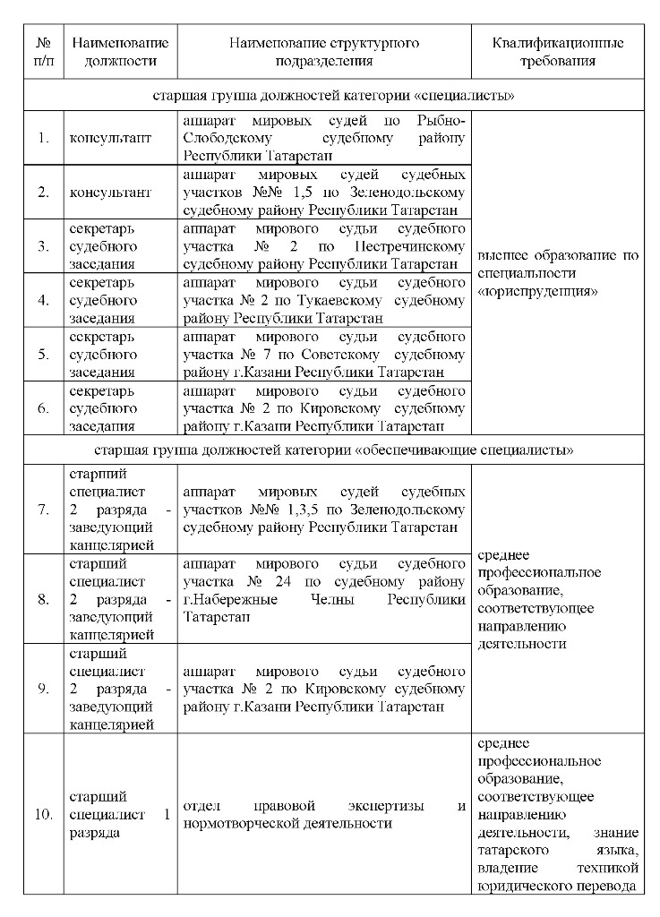 Министерство юстиции Республики Татарстан объявляет конкурс на замещение вакантных должностей государственной гражданской службы Республики Татарстан: