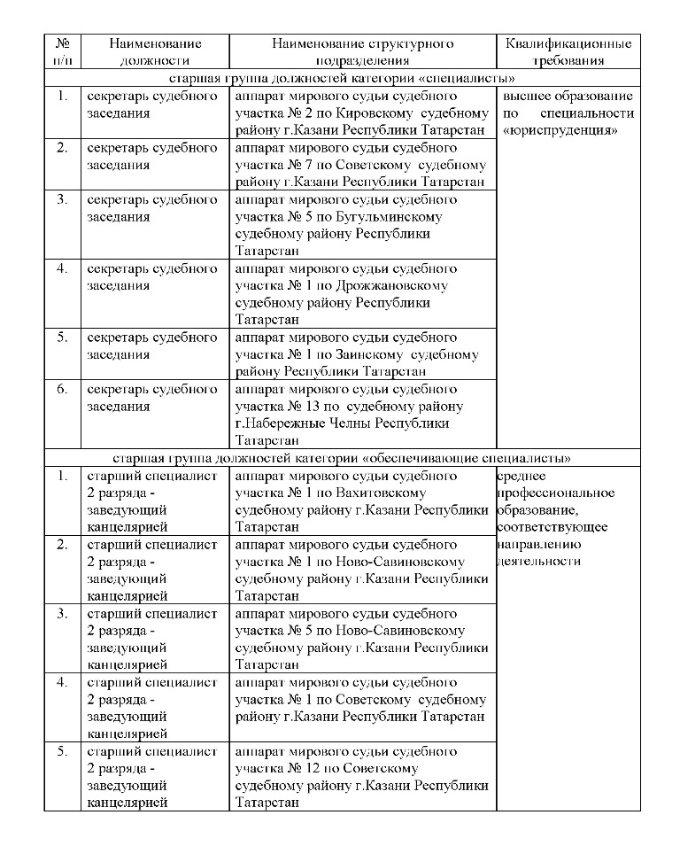 Министерство юстиции Республики Татарстан объявляет конкурс на замещение вакантных должностей государственной гражданской службы Республики Татарстан: