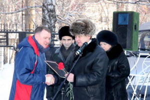 Участники митинга минутой молчания почтили память погибших и возложили цветы к обелиску павших солдат.