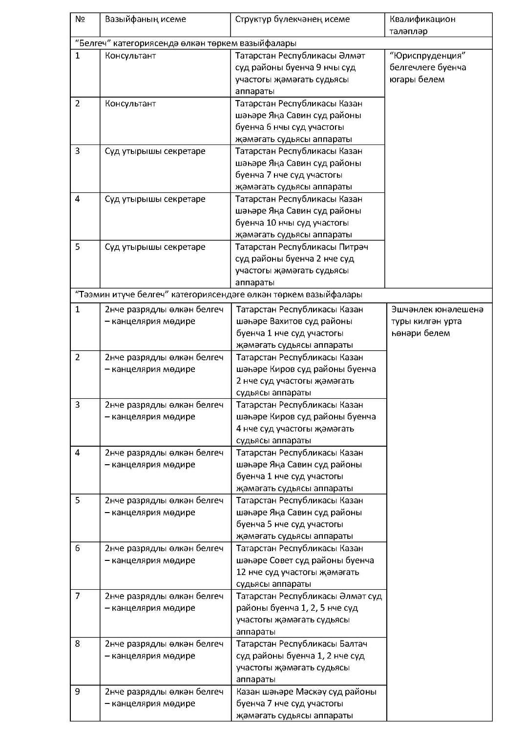 Татарстан Республикасы Юстиция министрлыгы дәүләт граждан хезмәтенең вакантлы вазыйфаларына конкурс игълан итә: