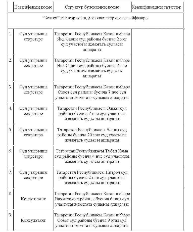Татарстан Республикасы Юстиция министрлыгы Татарстан Республикасы дәүләт гражданлык хезмәтләренең вакантлы вазыйфаларына конкурс игълан итә: